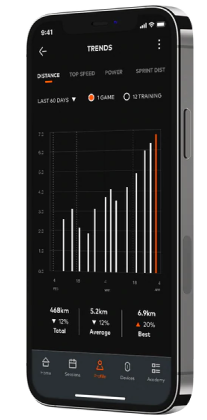Complete performance analysis in the Catapult One app. Track your distance, top speed, sprint distance, intensity, and view and analyze heatmaps to domninate your position on the pitch.
